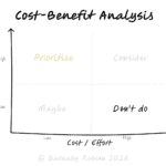 This is the lightweight, visual form of cost–benefit analysis. Instead of detailed NPV spreadsheets, you estimate benefit and effort/cost on consistent scales and place items on a 2×2 grid. It’s ideal for backlog grooming, roadmap picks and operational improvements where speed and clarity matter.