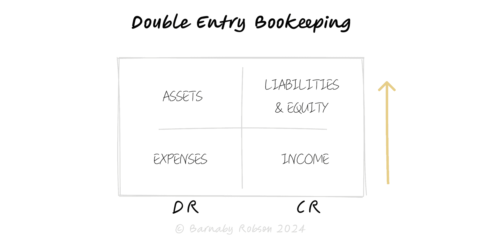 Double-entry is the backbone of reliable finance. Each transaction affects at least two accounts such that