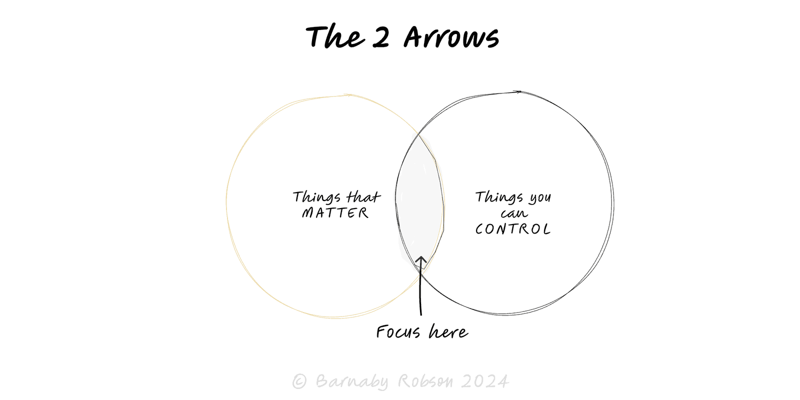 A practical prioritisation lens: point one arrow at things that matter, the other at things you can control. The overlap is your highest-leverage work. Everything else is either influence, maintain, or ignore.