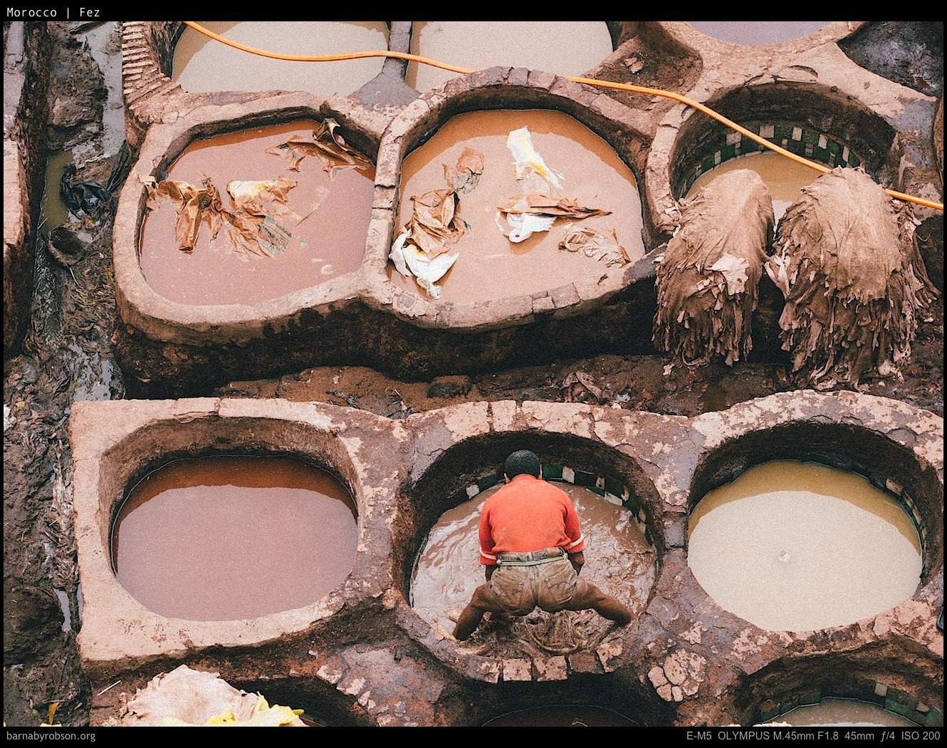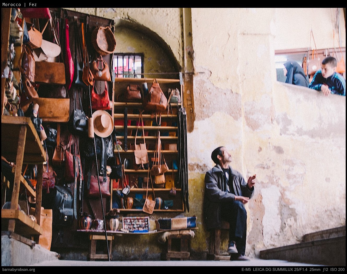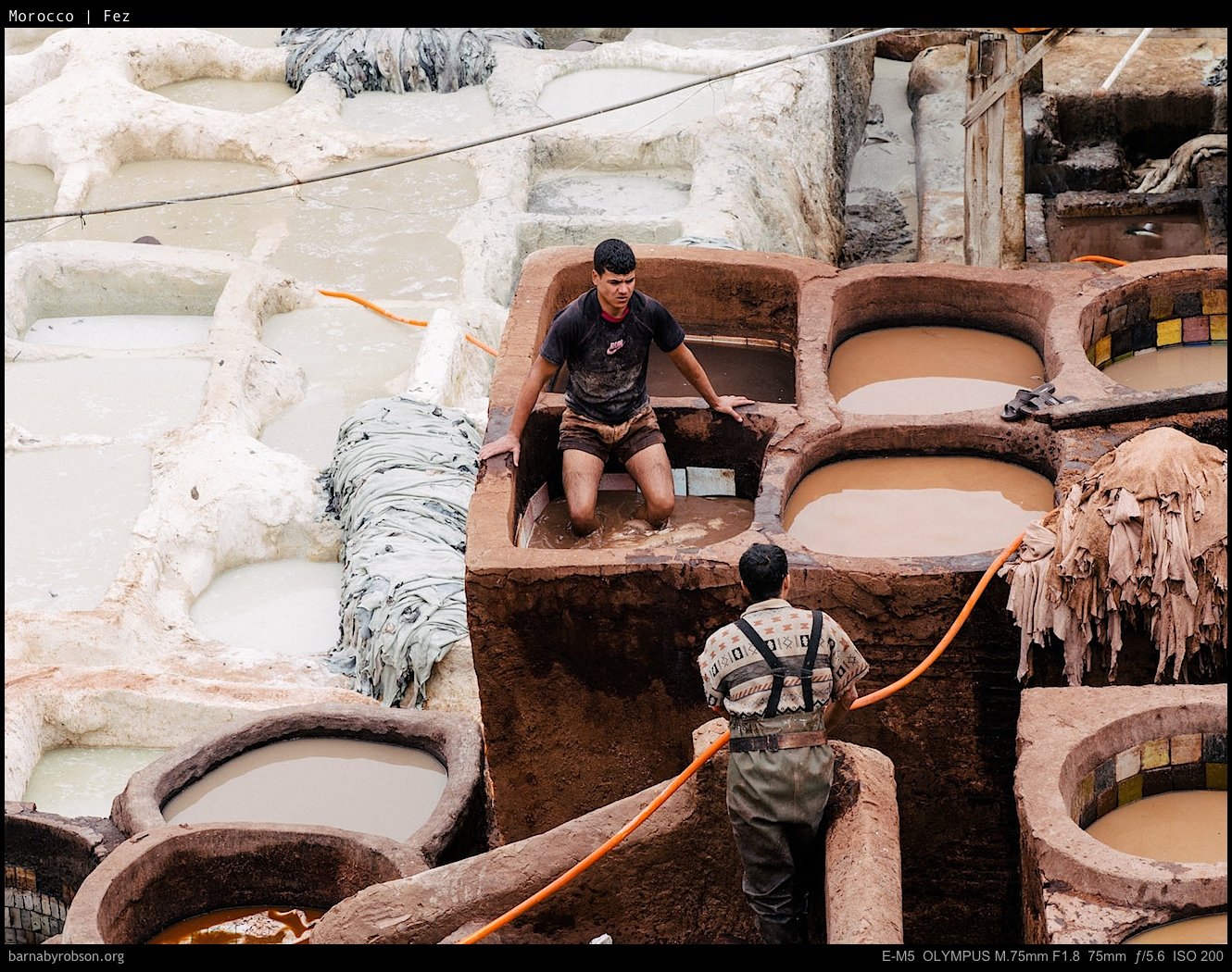 These frames focus on the tanneries and the old town — craft, texture, and daily trade rather than set-piece monuments.
