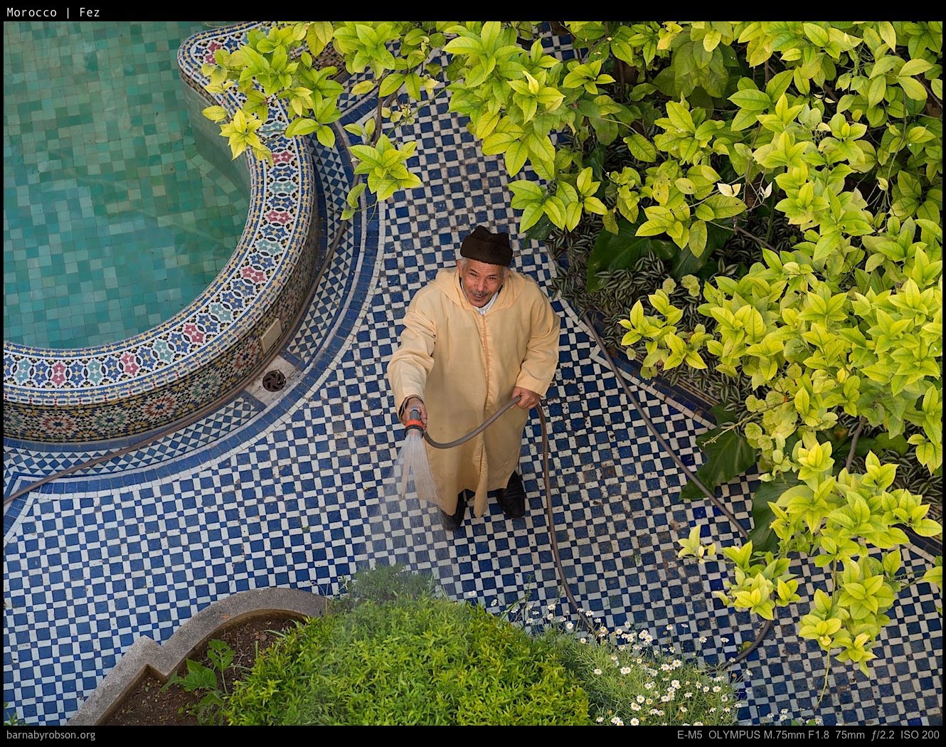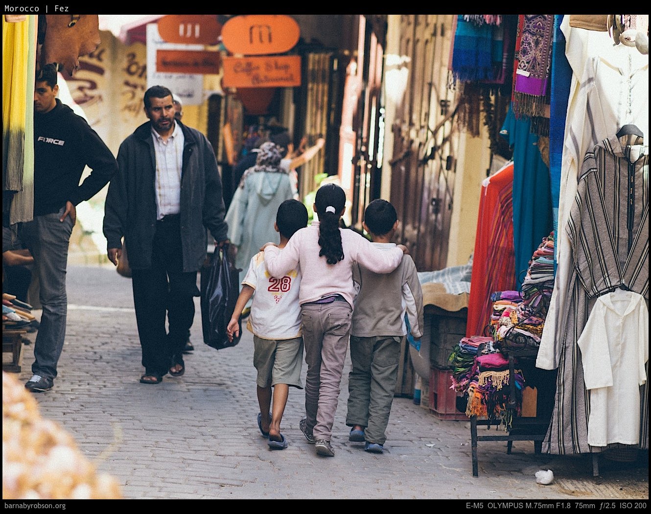 The streets are a maze: stone alleys, carved doors, tilework, markets that run late, light cutting across at odd angles.